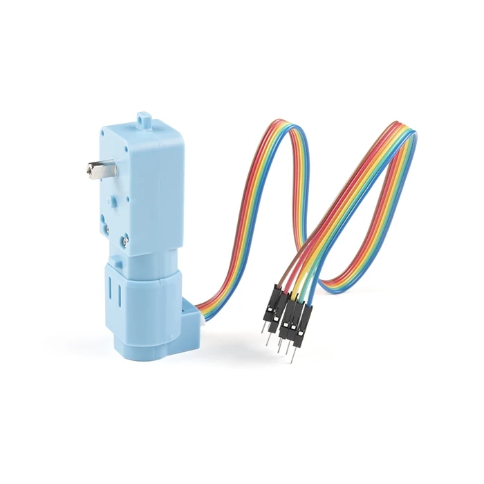 The DG01D-E is a single hobby motor with a hall speed encoder. This motor requires a voltage between 3-9V, has a gearbox ratio of 1:48 and a speed of 90RPM at 4.5V. The voltage between positive and negative is determined according to the power supply voltage of the single chip microcomputer used, generally 3.3V or 5V is used.